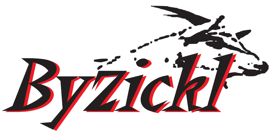 Byzickl ist ein Kunstwort – abgeleitet aus dem Namen des Firmeninhabers, melodisch dem Wort bicycle angelehnt, vielleicht auch was mit BY für Bayern oder buy. Aber bitte niemals „Büzickl“! Und das Ding über dem Schriftzug ist ein grafisch verzerrter Kopf eines Zickl-eins…